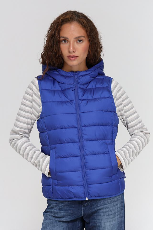Синий стеганый жилет Tom Tailor – практичная и стильная верхняя одежда для прохладной погоды. Удобный капюшон и застежка-молния обеспечивают комфорт и защиту от ветра. Идеально сочетается с повседневным гардеробом. Состав: полиэстер 100%