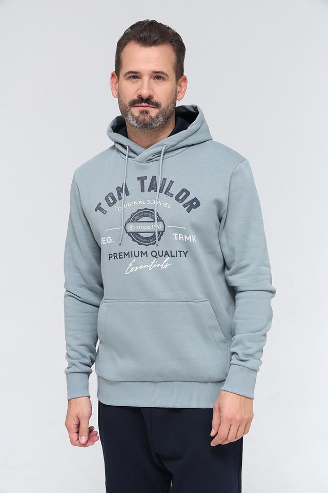 Мужская толстовка Tom Tailor голубого цвета с капюшоном — это удобная и стильная модель для повседневной носки. Выполнена из мягкого хлопка с добавлением полиэстера, имеет оригинальный принт с логотипом бренда. Состав: хлопок 70%, полиэстер 30%