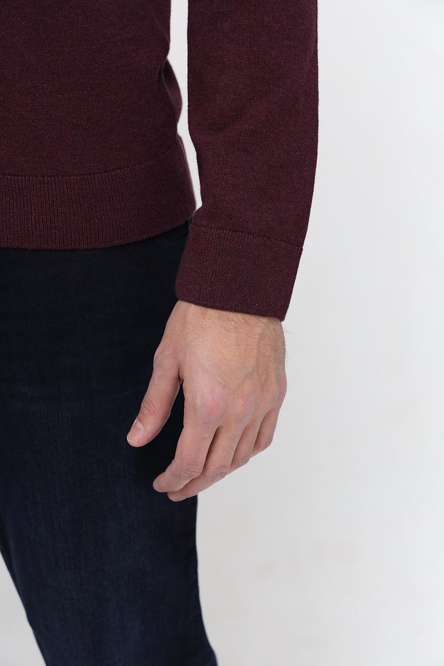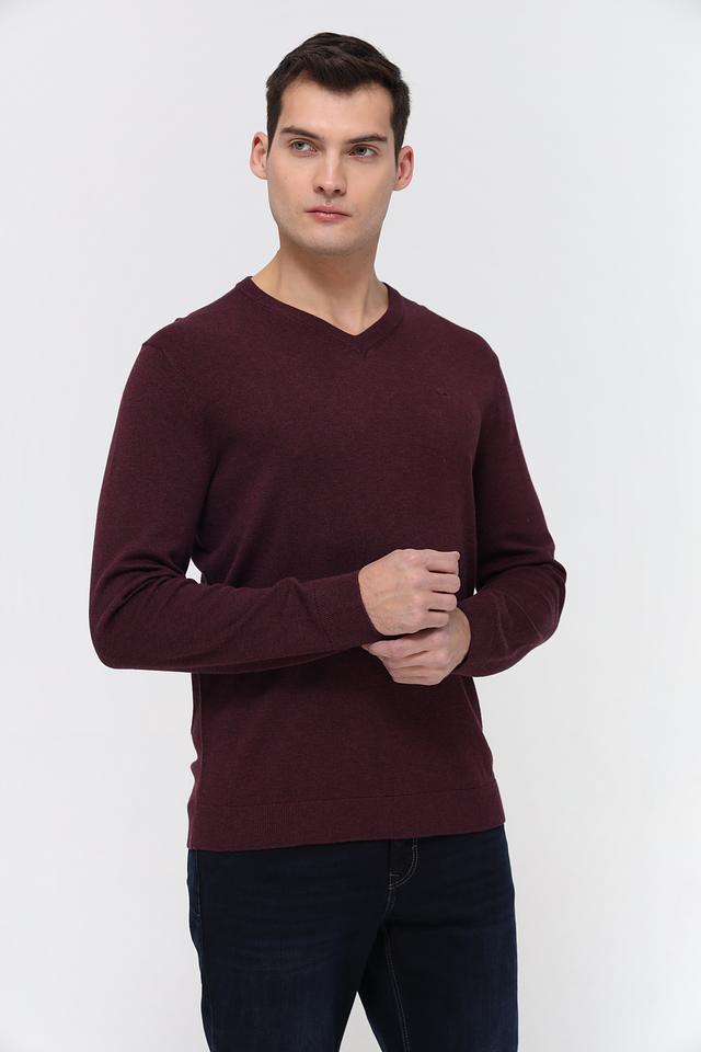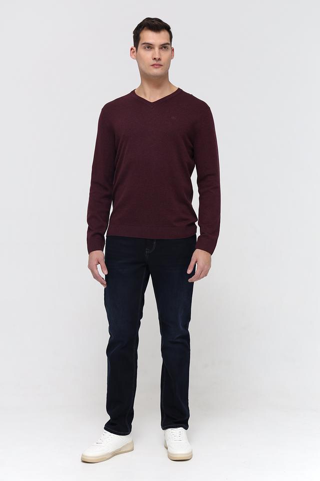 Модель имеет классический V-образный вырез, который подчеркивает мужественность силуэта. Винный цвет придает изделию элегантность и универсальность, позволяя легко сочетать его с различными элементами гардероба.