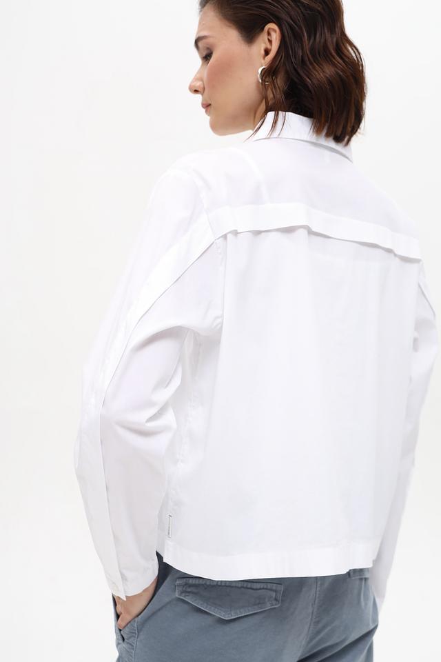 Белая блуза Tom Tailor denim из хлопка с полиамидом и эластаном. Классический крой, длинный рукав и застежка на пуговицы. Идеально подходит для создания повседневных образов. Состав: хлопок 69%, полиамид 26%, эластан 5%