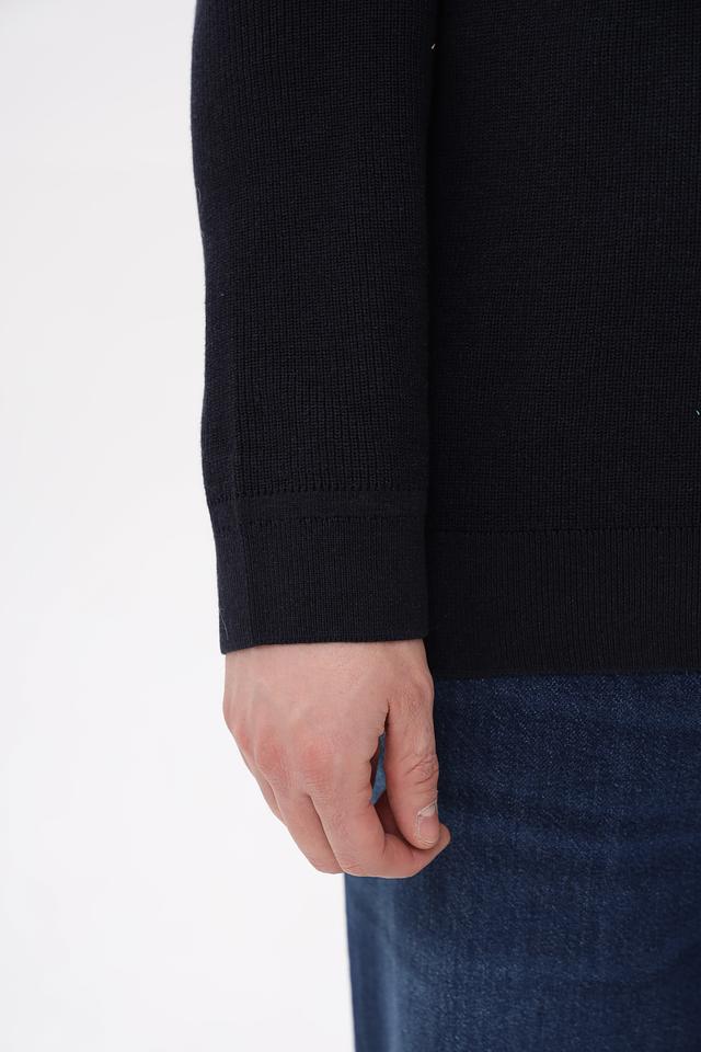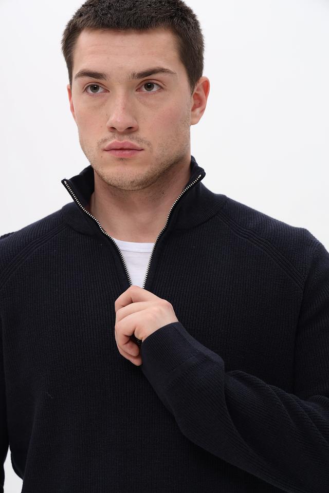 Джемпер имеет удобную посадку, не сковывающую движений. Короткая молния на воротнике позволяет регулировать степень защиты от холода и добавляет изделию функциональности. Текстура вязки придает джемперу объем и визуальный интерес.