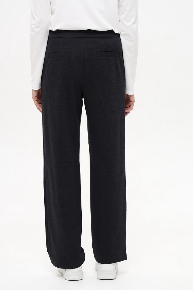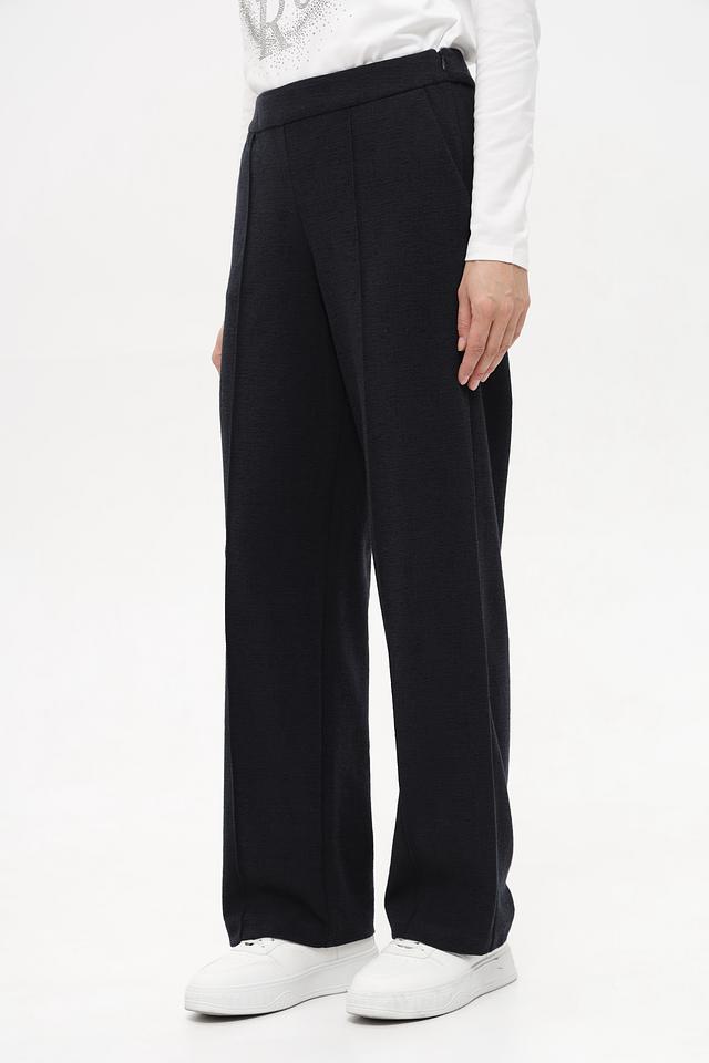 Брюки имеют прямой крой, который обеспечивает свободу движений и комфорт в течение всего дня. Эластичный пояс гарантирует идеальную посадку по фигуре, а боковые карманы добавляют функциональности.