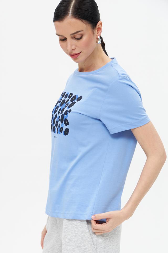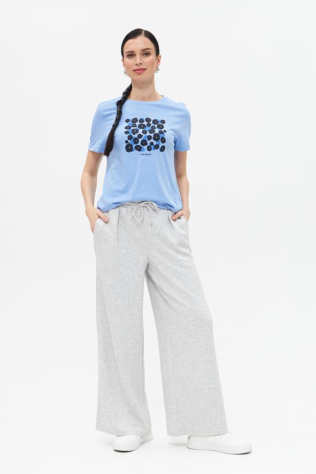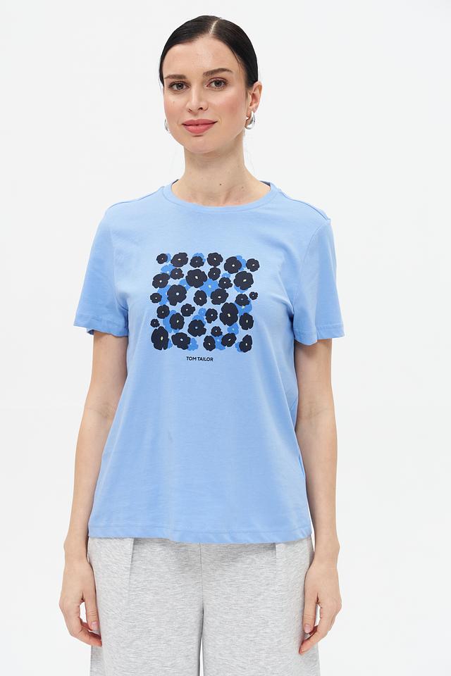 Голубая футболка Tom Tailor с оригинальным цветочным принтом – отличный выбор для создания повседневного образа. Изготовлена из 100% хлопка, обеспечивающего комфорт и воздухопроницаемость. Состав: хлопок 100%