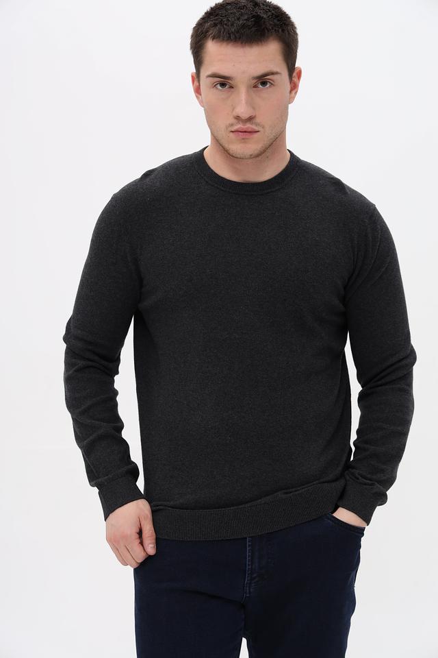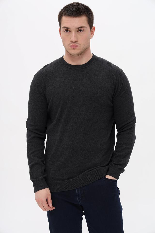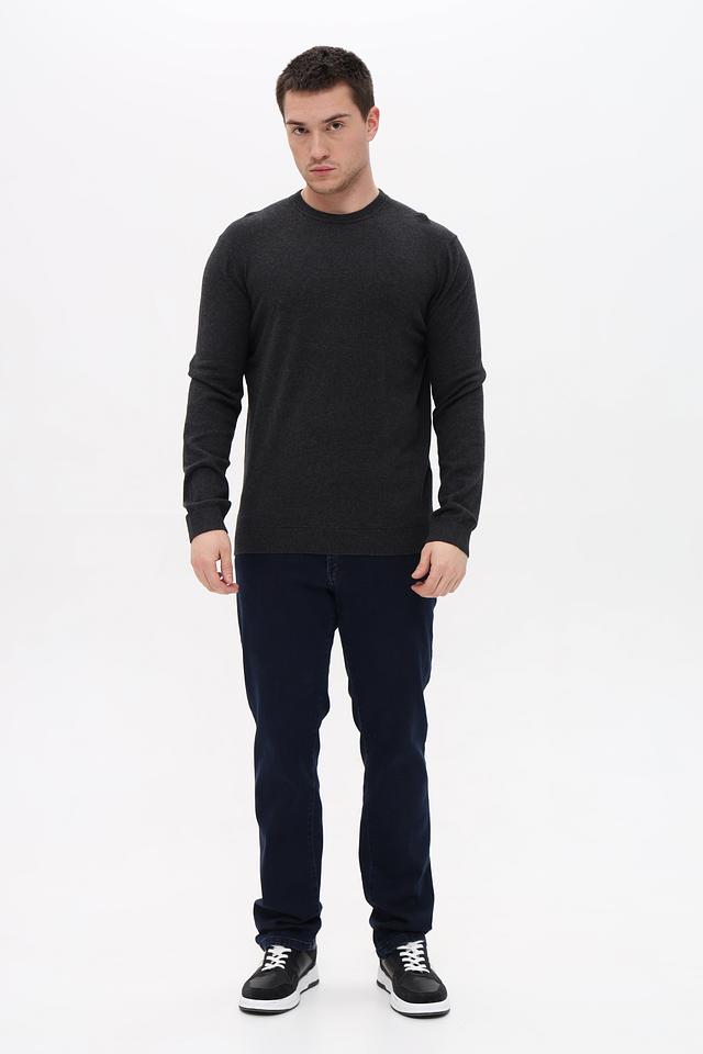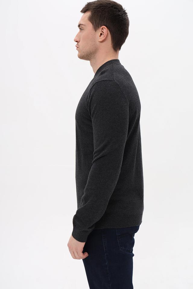 Джемпер выполнен в сером меланжевом цвете, который легко сочетается с различными стилями одежды. Текстура ткани с меланжевым эффектом придает изделию современный и стильный вид.