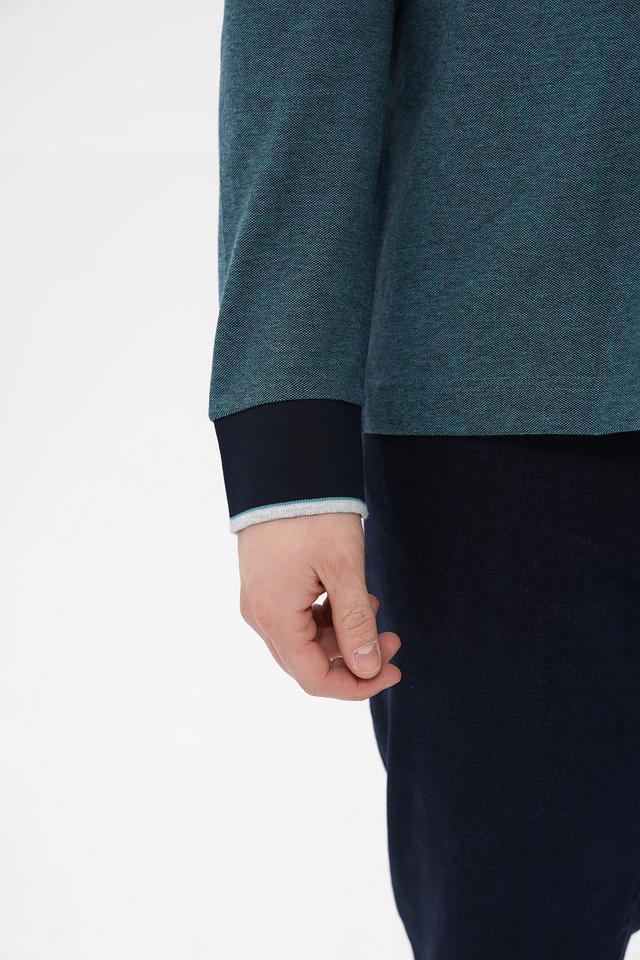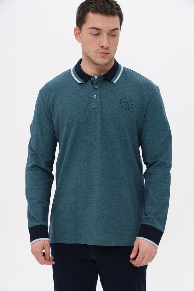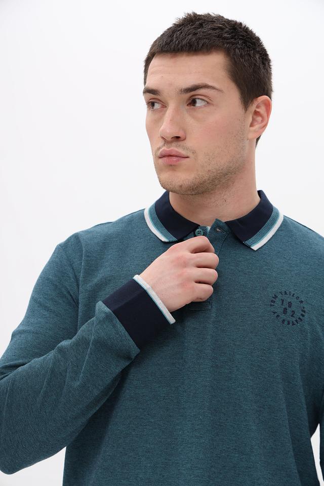 Мужское поло от Tom Tailor бирюзового цвета с длинным рукавом и контрастной отделкой. Изготовлено из мягкого хлопка с добавлением эластана для комфорта и свободы движений. Состав: хлопок 98%, эластан 2%