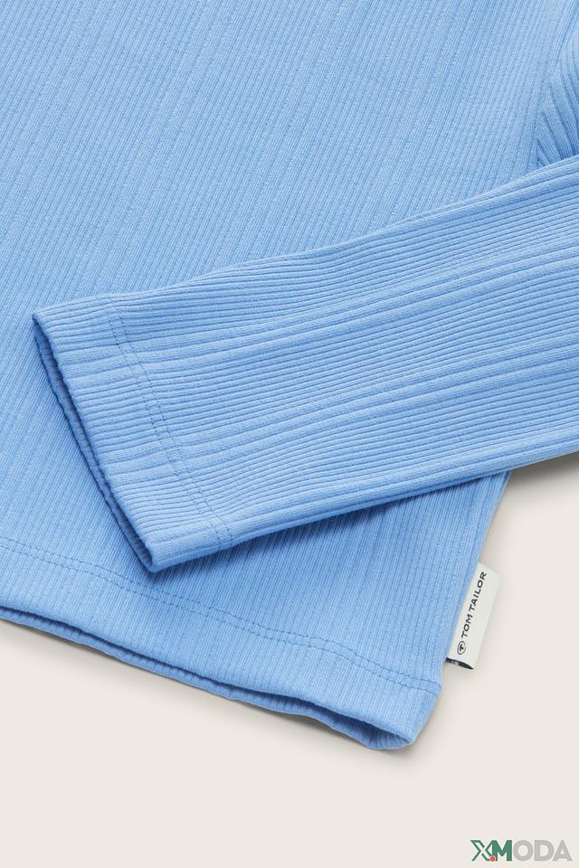 Голубая футболка от Tom Tailor для девочки выполнена из мягкого хлопка с добавлением эластана. Модель с длинным рукавом и текстурой в рубчик обеспечит комфорт и стильный вид. Состав: хлопок 95%, эластан 5%