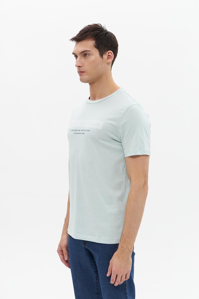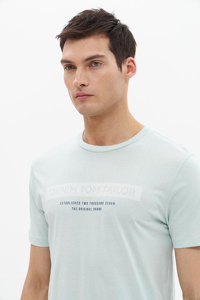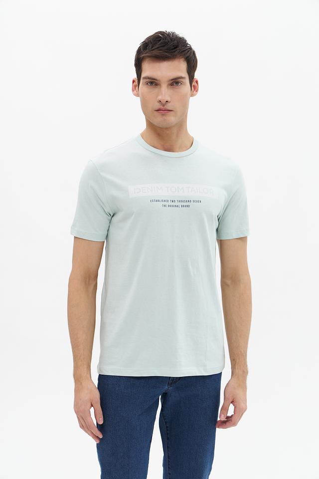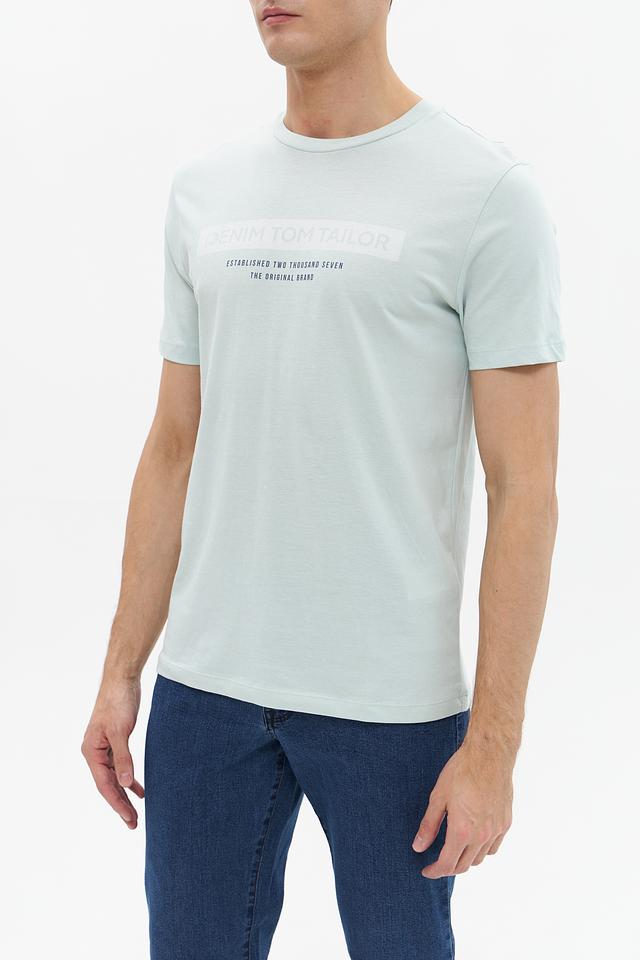 Мужская футболка Tom Tailor denim светло-зелёного цвета с принтом на груди. Изготовлена из 100% хлопка, обеспечивающего комфорт и воздухопроницаемость. Отличный выбор для повседневного образа. Состав: хлопок 100%