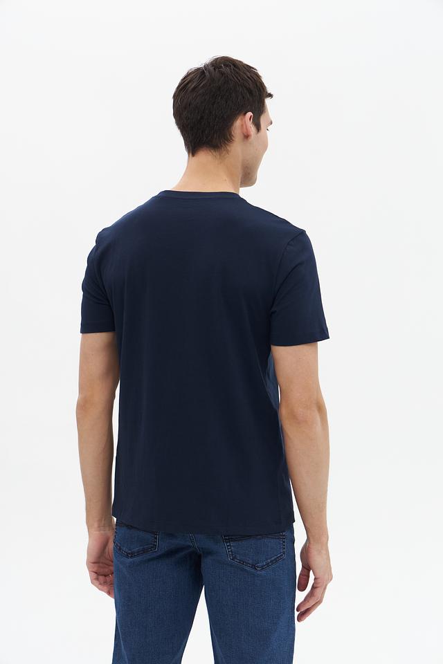 Мужская футболка Tom Tailor denim насыщенного синего цвета с оригинальным круглым принтом на груди. Изготовлена из 100% хлопка, обеспечивающего комфорт и воздухопроницаемость. Состав: хлопок 100%