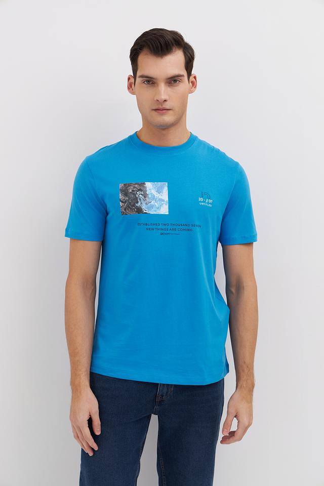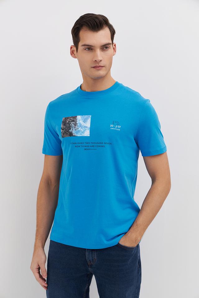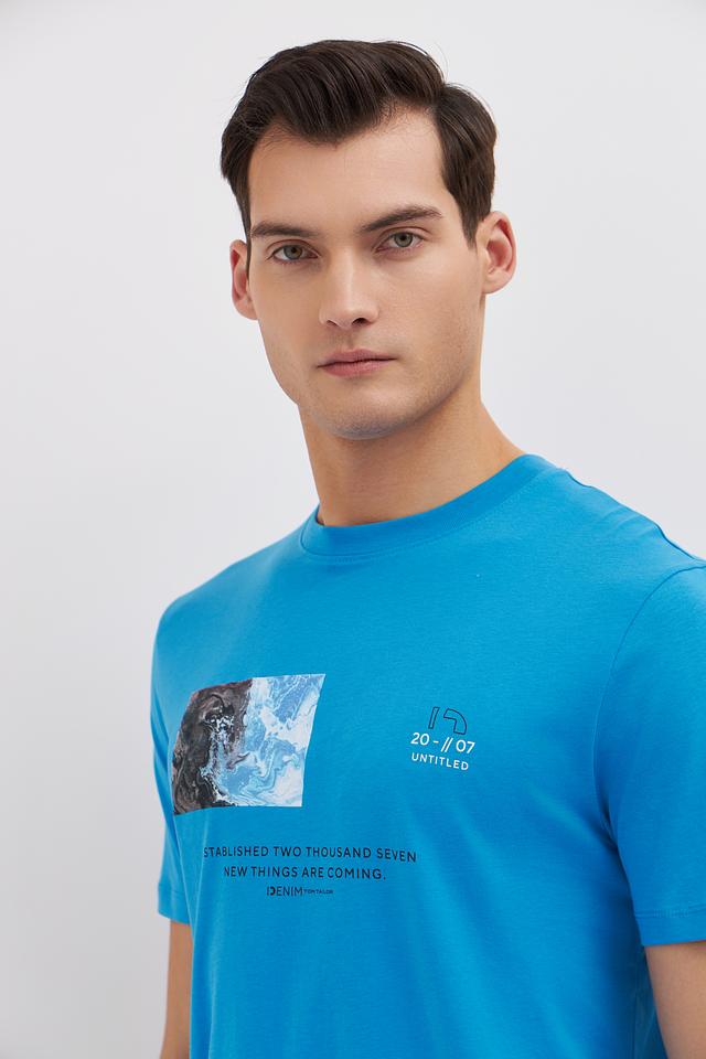 Голубая футболка Tom Tailor denim с принтом — стильный выбор для повседневного образа. Изготовлена из 100% хлопка, обеспечивающего комфорт и воздухопроницаемость. Футболка отличается оригинальным дизайном с графическим изображением. Состав: хлопок 100%