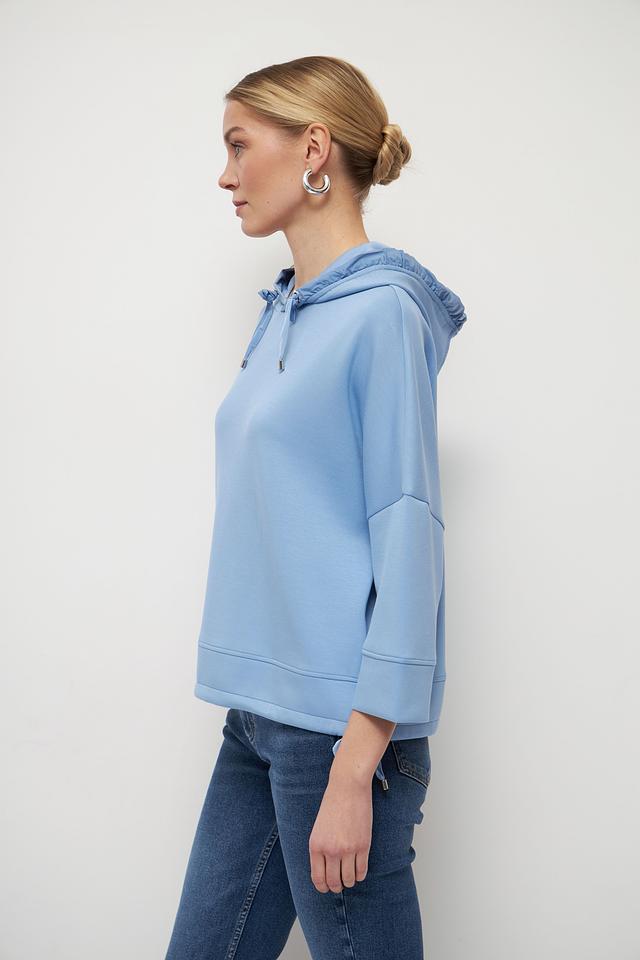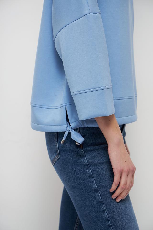 Рукава толстовки – три четверти, что делает ее идеальной для теплой погоды или для создания многослойных образов. Округлый вырез горловины и эластичные манжеты рукавов обеспечивают комфортную посадку по фигуре.