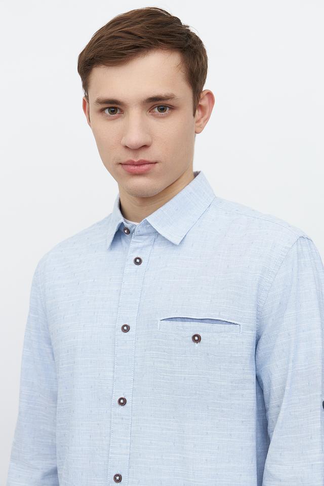 Голубая рубашка с длинным рукавом от Tom Tailor выполнена из 100% хлопка. Модель имеет классический крой, воротник и застёжку на пуговицах тёмно-синего цвета, а также нагрудный карман. Состав: хлопок 100%