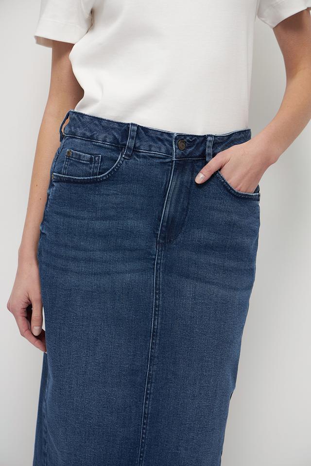 Эта джинсовая юбка от Tom Tailor станет незаменимой частью вашего гардероба. Классический синий цвет и универсальная длина миди делают ее подходящей для различных случаев.