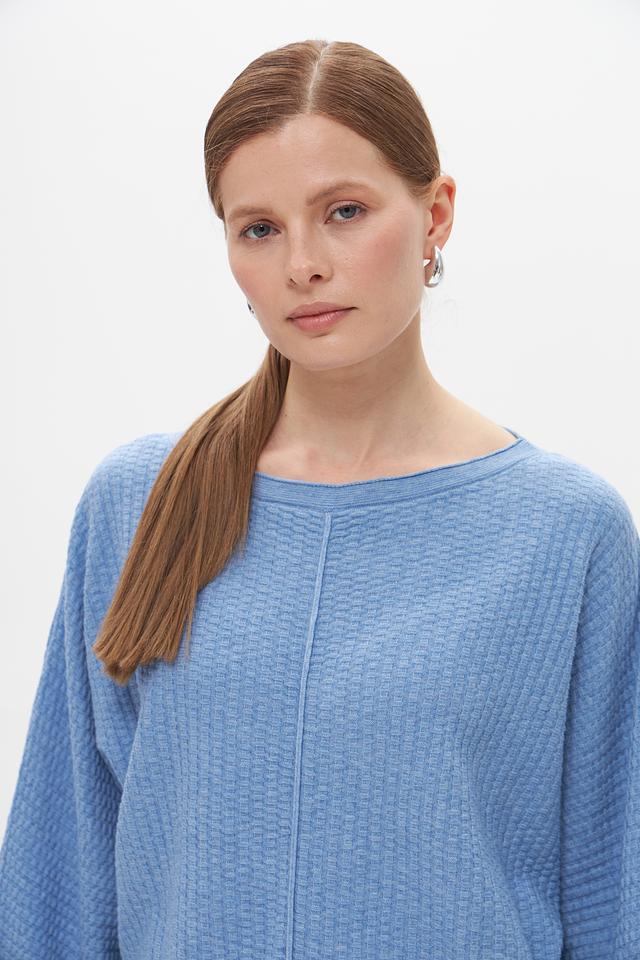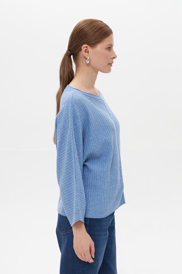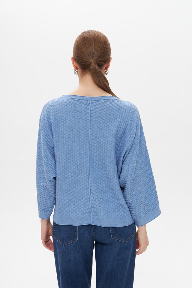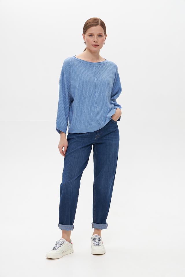 Женский пуловер Tom Tailor голубого цвета с объёмной текстурой. Изготовлен из сочетания полиэстера и хлопка, обеспечивающего комфорт и практичность. Свободный крой и оригинальный дизайн. Состав: полиэстер 65%, хлопок 35%