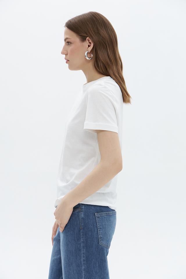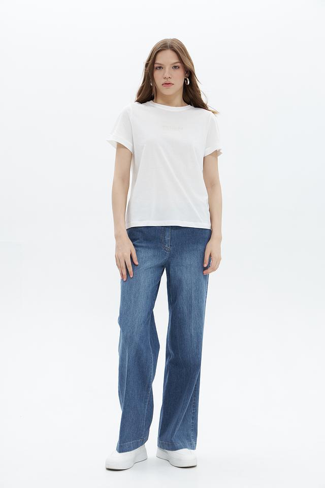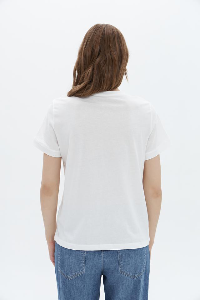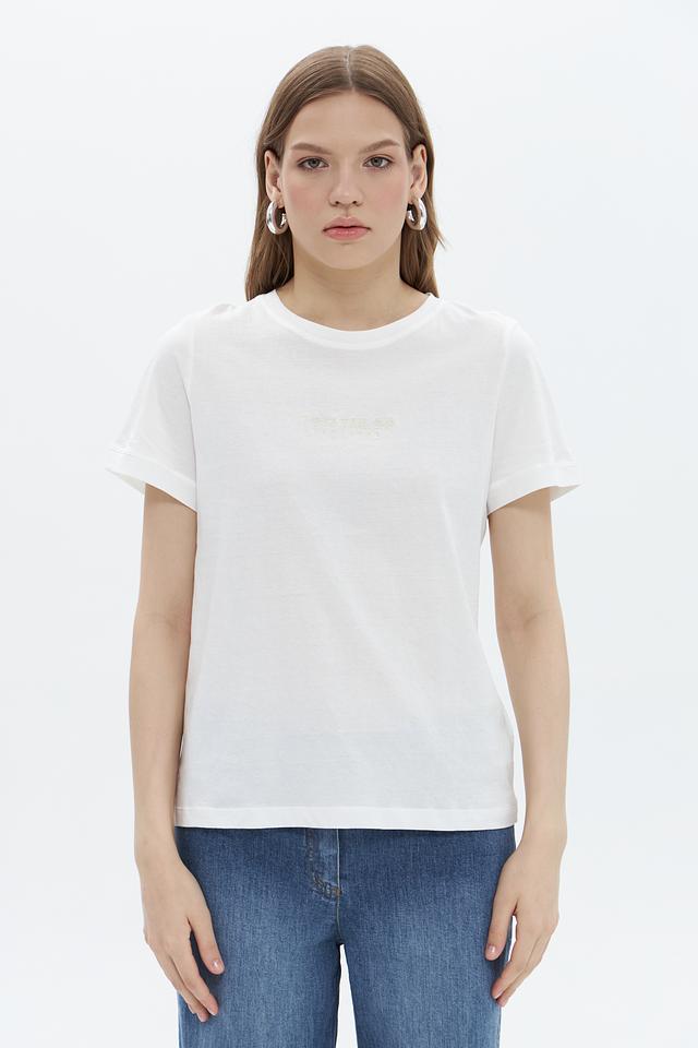 Классический крой футболки подходит для любого типа фигуры. Небольшой логотип бренда на груди добавляет стильный акцент. Футболка идеально сочетается с джинсами, шортами или юбками, создавая непринужденный и современный образ.
