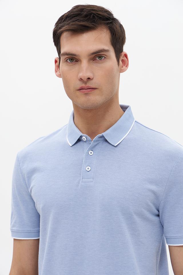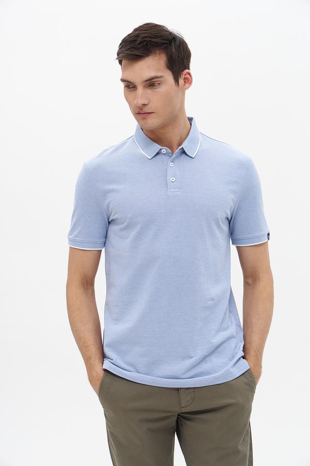 Нежный голубой цвет делает эту модель универсальной и легко сочетаемой с различными элементами одежды. Поло идеально подходит для создания повседневных образов, а также для более расслабленных мероприятий.
