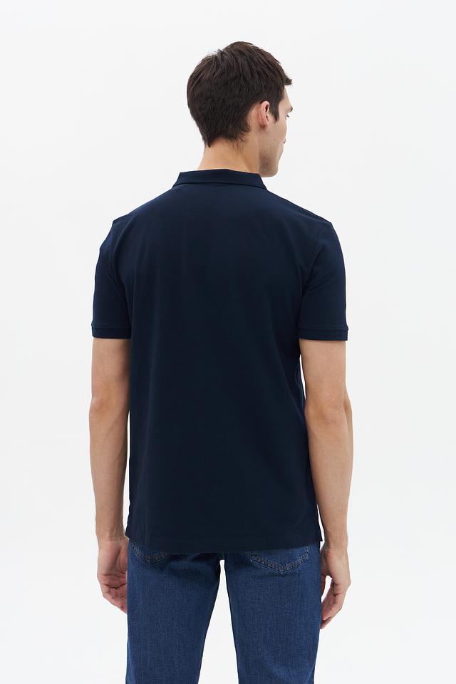 Классический крой поло идеально подходит для любого типа фигуры. Тёмно-синий цвет делает эту модель универсальной и легко сочетаемой с другими элементами одежды. Минималистичный дизайн с небольшим логотипом бренда на груди добавляет поло элегантности.