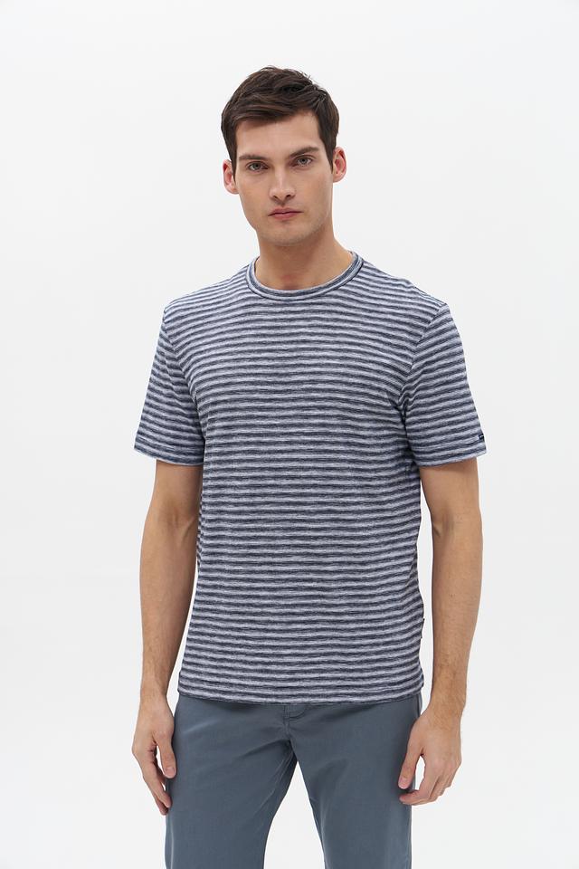 Мужская футболка Tom Tailor серого цвета с классическим полосатым принтом. Изготовлена из 100% хлопка, обеспечивающего комфорт и воздухопроницаемость. Отличный выбор для повседневного образа. Состав: хлопок 100%