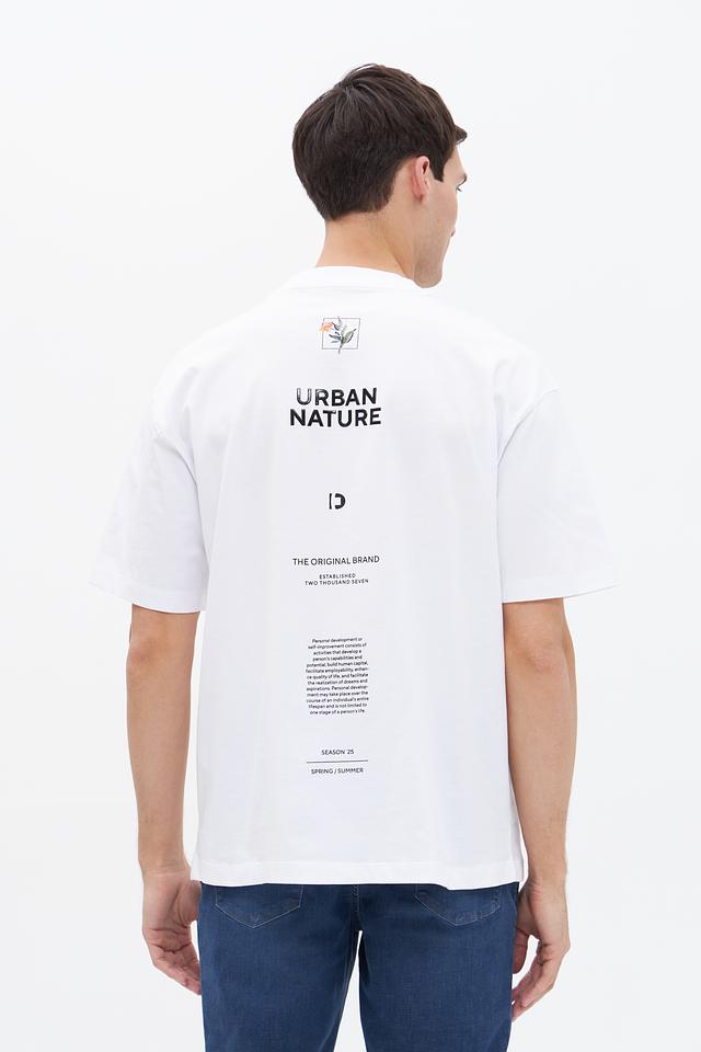 На груди расположена небольшая графика — квадрат с логотипом бренда, что добавляет футболке индивидуальности. Эта деталь делает ее отличным выбором для тех, кто ценит минимализм и лаконичный дизайн.