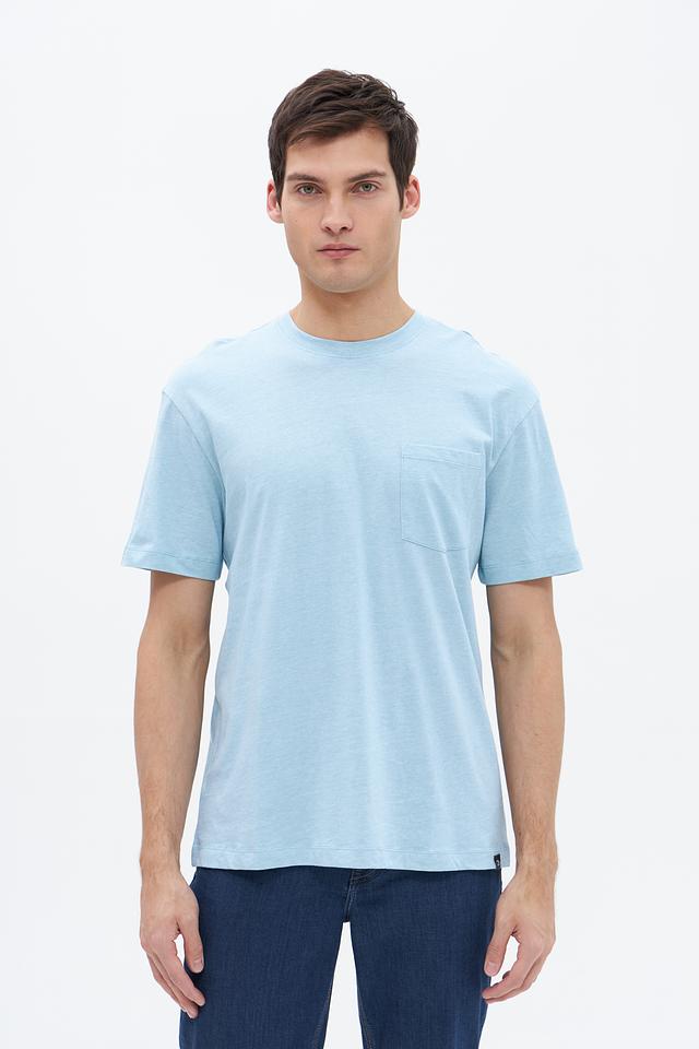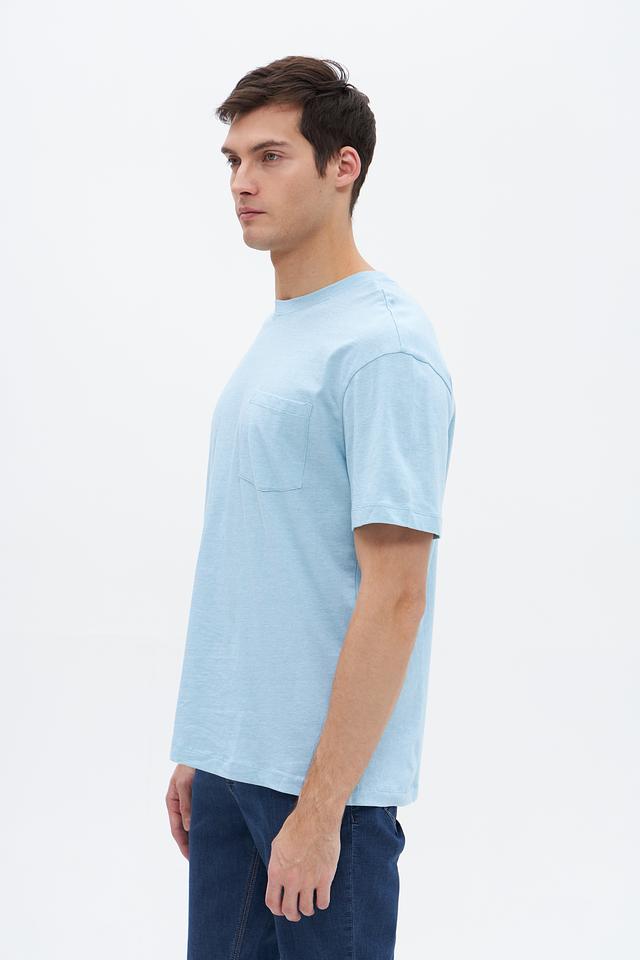 Отличительной особенностью данной модели является накладной карман на груди, который добавляет ей функциональности и стиля. Голубой цвет футболки легко сочетается с другими элементами гардероба, позволяя создавать разнообразные образы.