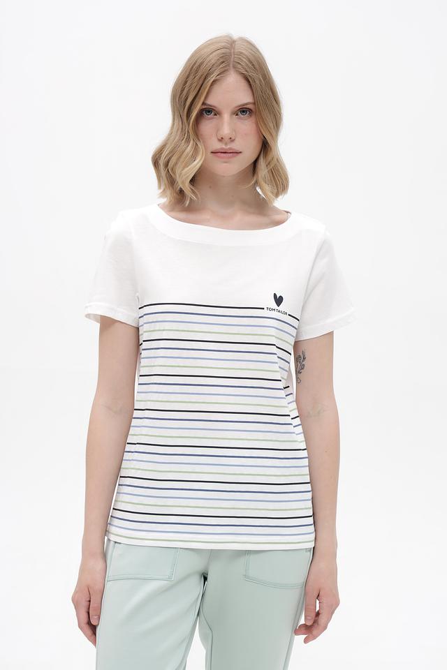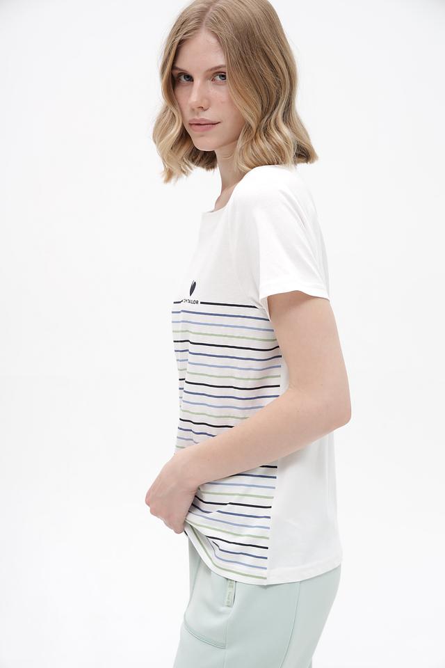 Белая футболка Tom Tailor с горизонтальными полосами. Модель выполнена из 100% хлопка, обеспечивающего комфорт в носке. Классический крой и лаконичный дизайн. Состав: хлопок 100%