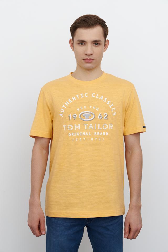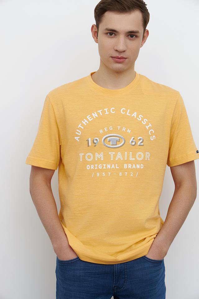 Мужская футболка Tom Tailor жёлтого цвета с оригинальным принтом на передней части. Изготовлена из мягкого хлопка с добавлением полиэстера для комфорта и долговечности. Состав: хлопок 94%, полиэстер 6%