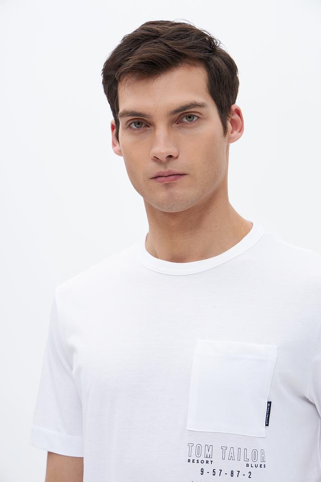 Белая футболка Tom Tailor с коротким рукавом и оригинальным принтом на нагрудном кармане. Изготовлена из 100% хлопка, обеспечивающего комфорт и воздухопроницаемость. Идеальный выбор для повседневного образа. Состав: хлопок 100%