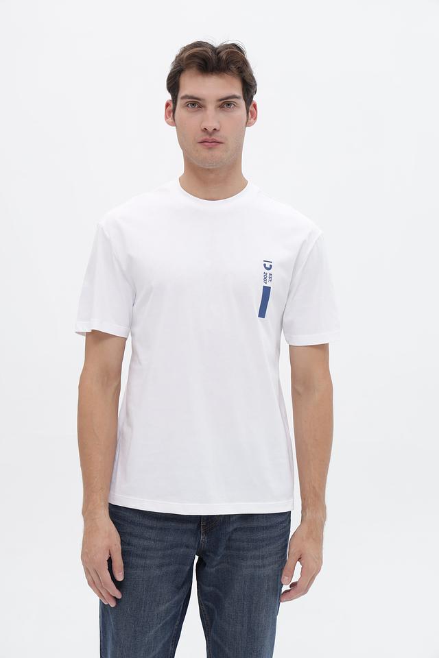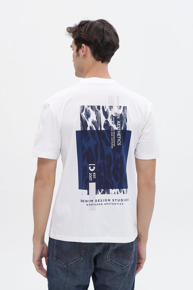 Белая футболка Tom Tailor denim из 100% хлопка с принтом на груди и спине. Стильный и комфортный выбор для повседневного образа. Состав: хлопок 100%