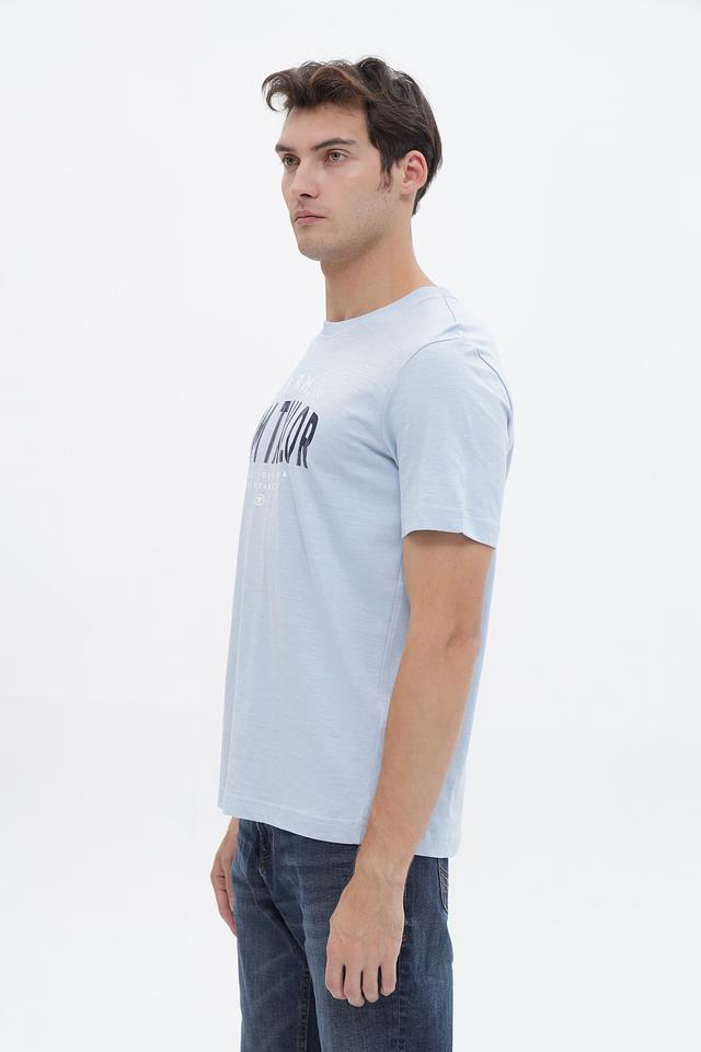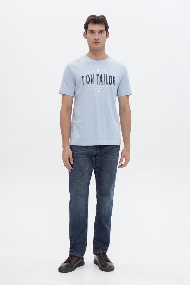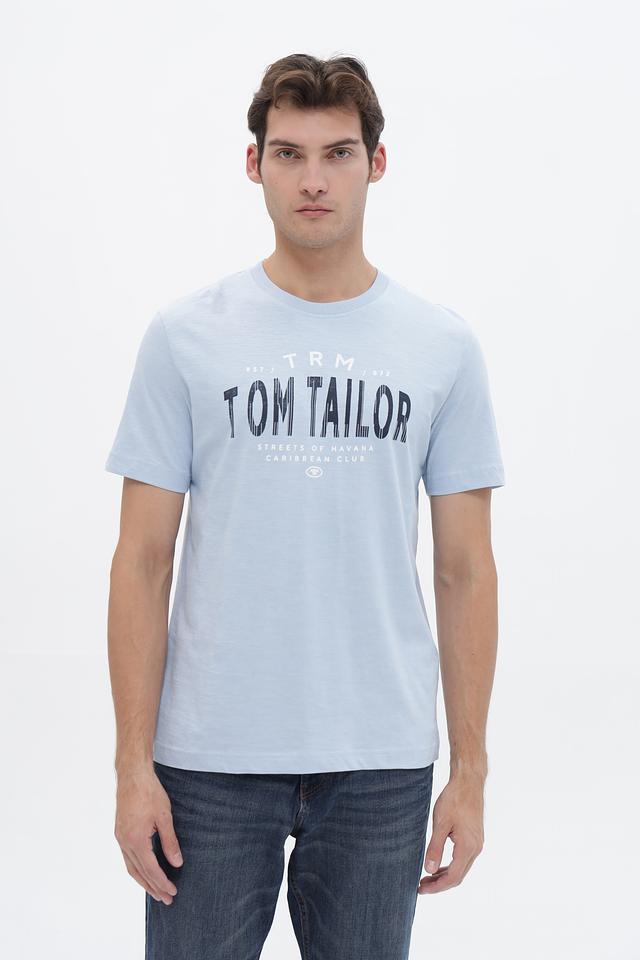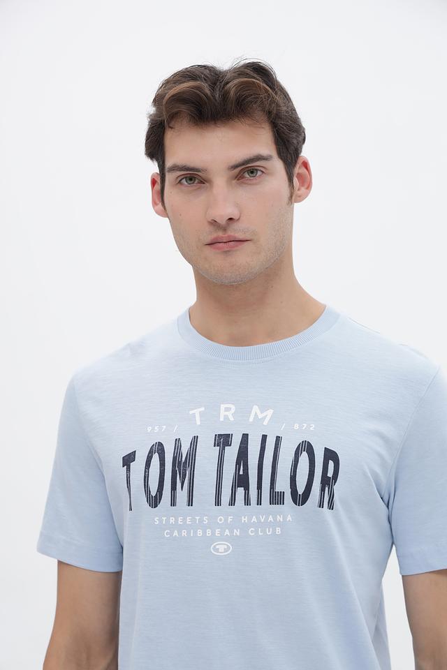 Голубая футболка Tom Tailor из 100% хлопка с принтом логотипа. Классический крой и мягкий материал обеспечивают комфорт в повседневной носке. Состав: хлопок 100%