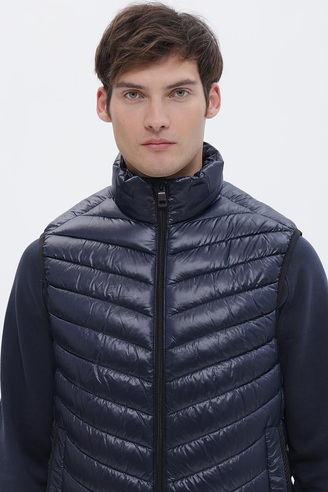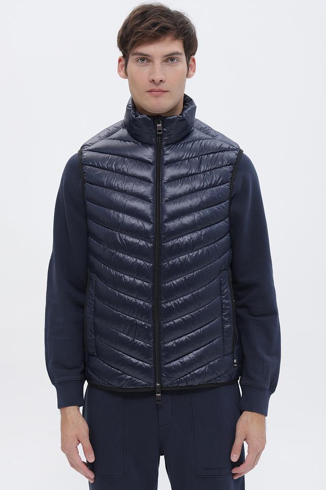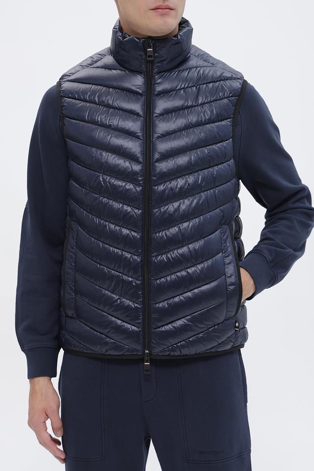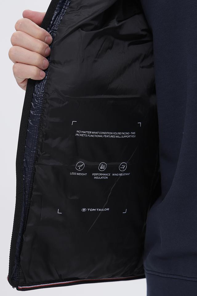 Мужской жилет от Tom Tailor выполнен в насыщенном синем цвете. Модель имеет стеганую фактуру, которая придает ей современный и стильный вид. Застежка – молния. Воротник – стойка.