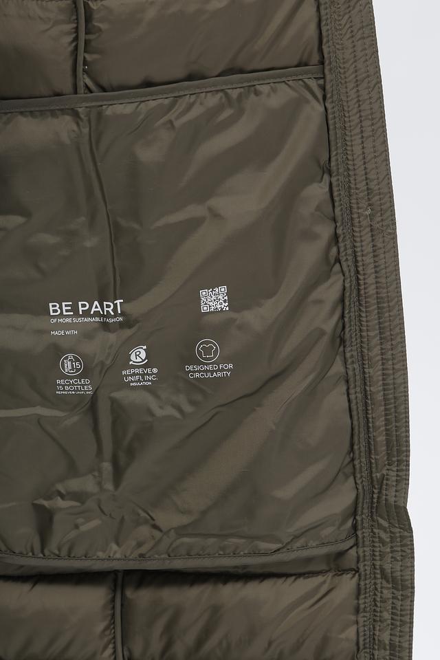 Изготовлено из 100% полиэстера, что обеспечивает легкость, теплоизоляцию и простоту ухода. Подкладка и утеплитель также выполнены из полиэстера. На подкладке размещен логотип бренда и информация об использовании переработанных материалов.