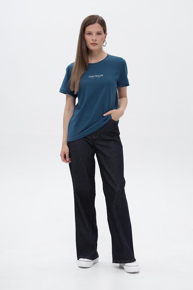 На передней части футболки расположен небольшой логотип бренда Tom Tailor, выполненный в контрастном цвете, что добавляет ей стильный и узнаваемый вид. Эта футболка отлично сочетается с джинсами, шортами или юбками, позволяя создавать разнообразные образы.