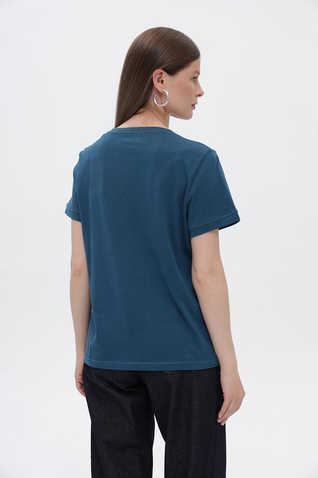 Футболка имеет прямой крой, который обеспечивает свободу движений, а короткие рукава делают ее идеальным выбором для теплой погоды. Бирюзовый цвет придает образу свежесть и легкость.