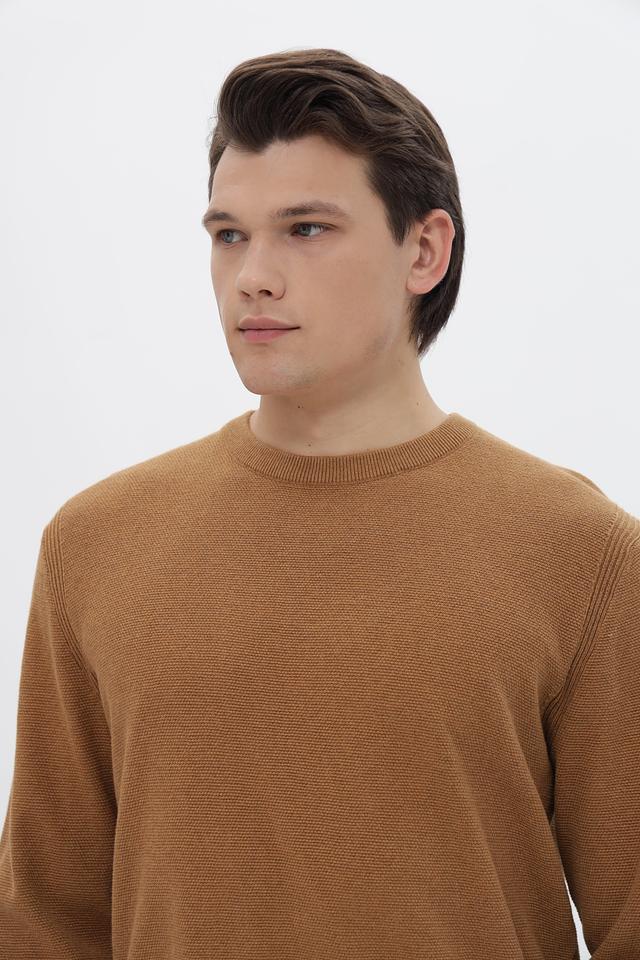 Джемпер имеет классический крой с круглым вырезом горловины и длинными рукавами. Трикотажная структура вязки обеспечивает комфорт и свободу движений. Изготовлен джемпер из 100% хлопка, что делает его приятным к телу и позволяет коже дышать.