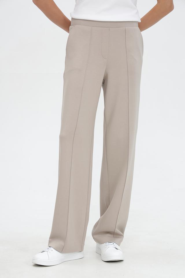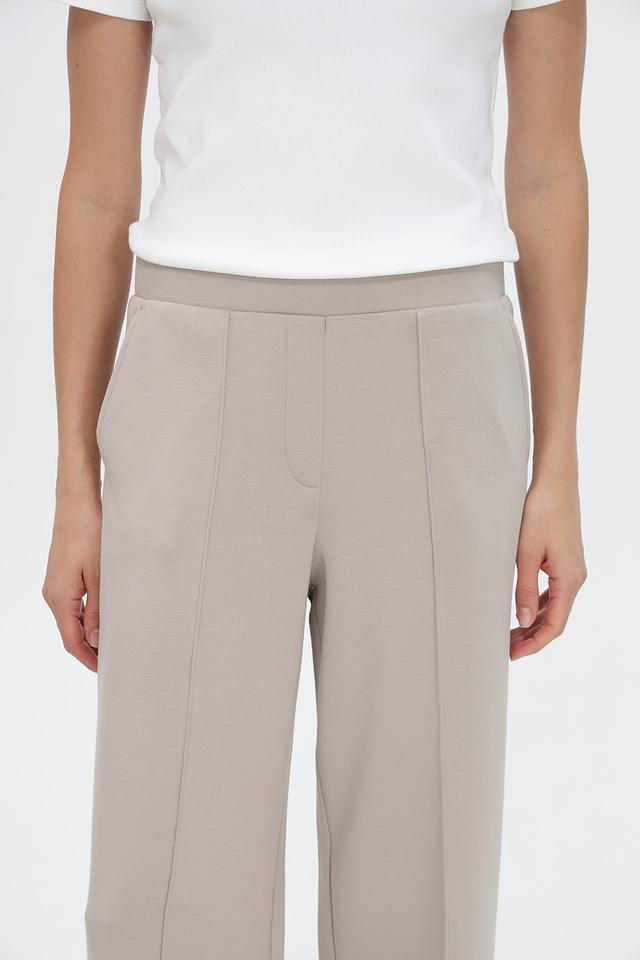 Брюки имеют прямой крой, который обеспечивает свободу движений и комфорт в течение всего дня. Эластичный пояс гарантирует идеальную посадку по фигуре. Наличие вертикальных вытачек спереди визуально удлиняет ноги и придает брюкам более элегантный вид.