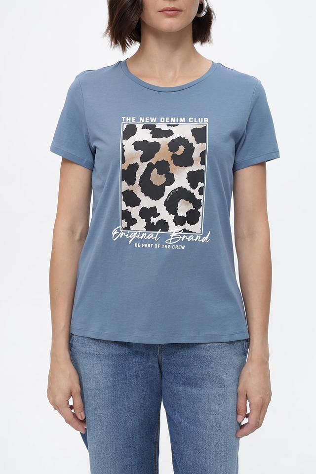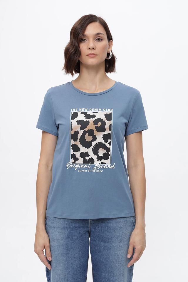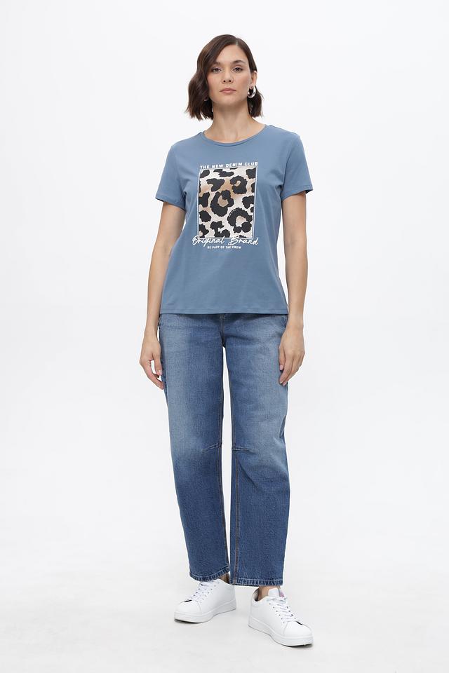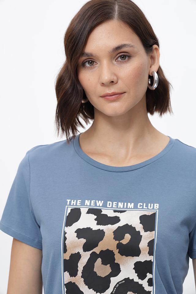 Женская футболка Tom Tailor denim голубого цвета с ярким принтом в стиле леопард. Изготовлена из 100% хлопка, обеспечивающего комфорт и воздухопроницаемость. Стильный и удобный вариант для повседневного образа. Состав: хлопок 100%