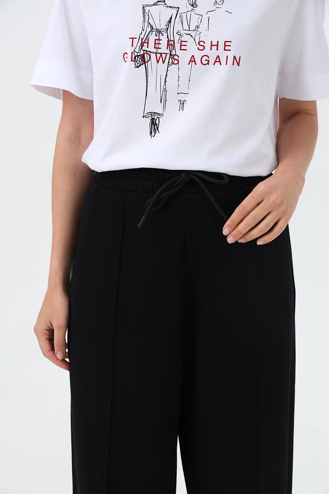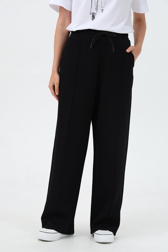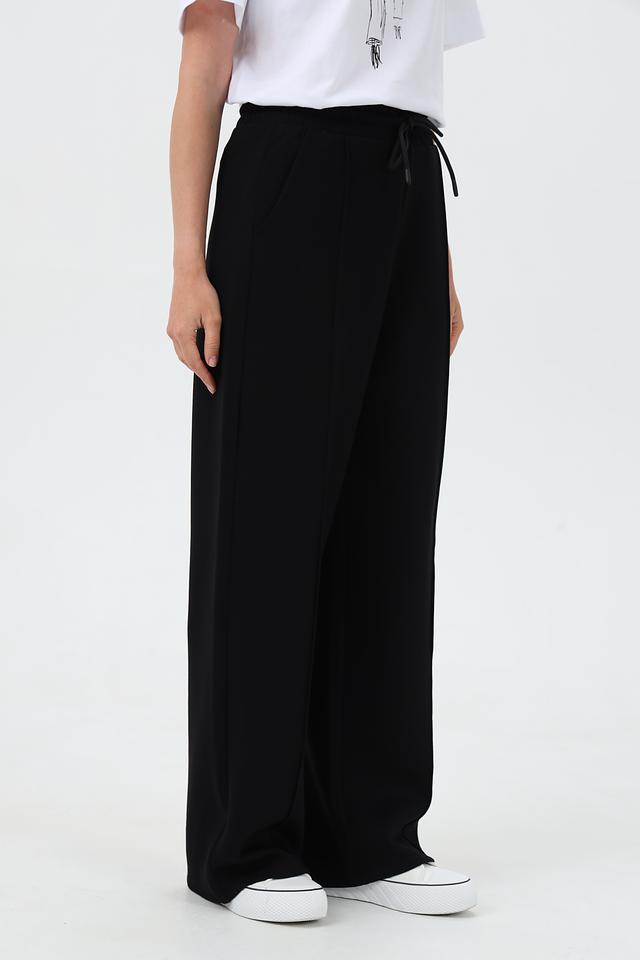 Крой палаццо с завышенной талией визуально удлиняет ноги и создает элегантный силуэт. Пояс на кулиске позволяет регулировать посадку брюк по фигуре. Модель дополнена боковыми карманами для удобства. Эти брюки идеально подойдут для создания как повседневных, так и более нарядных образов.