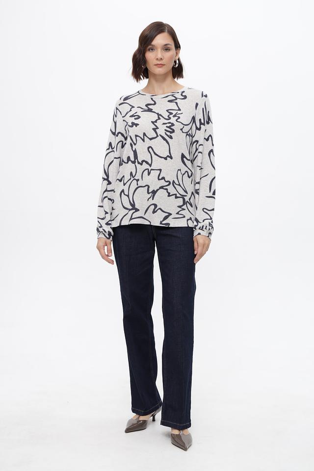 Пуловер имеет классический крой с длинными рукавами и круглым вырезом горловины. Свободная посадка обеспечивает комфорт в носке и позволяет легко сочетать его с различными элементами одежды.