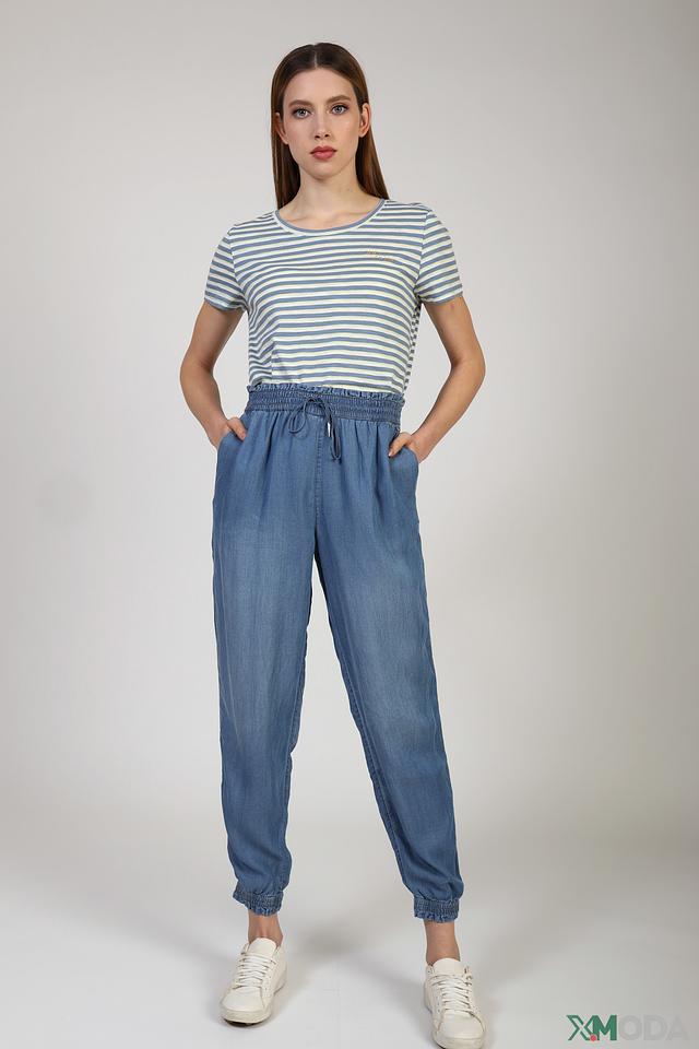 Женские брюки от Tom Tailor голубого цвета – это удобная и стильная модель в стиле casual. Брюки выполнены из мягкого лиоцела, имеют завышенную талию и эластичный пояс с кулиской, а также манжеты внизу брючин. Состав: лиоцел 100%