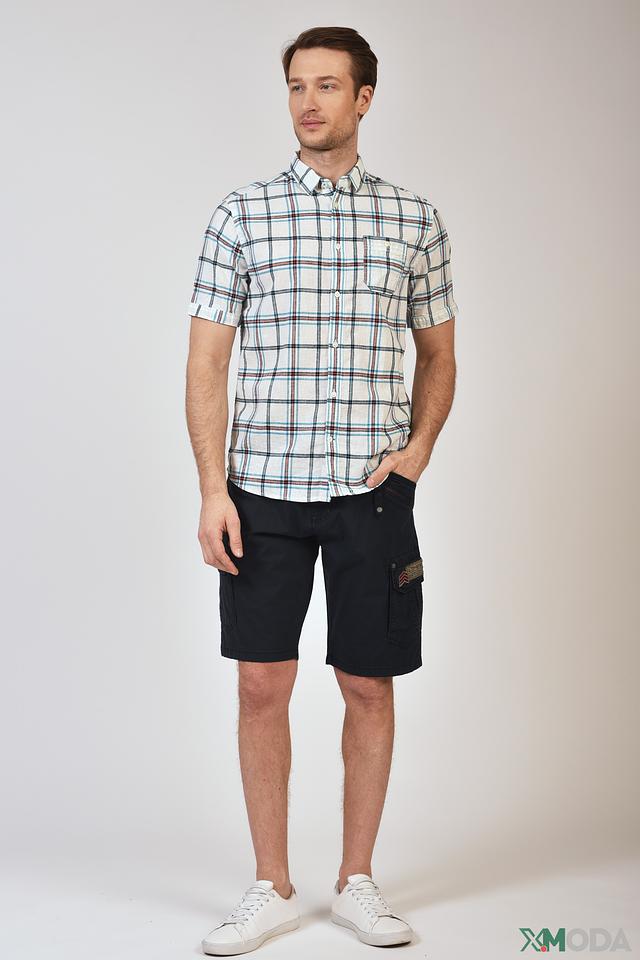 Рубашка имеет прямой крой, короткие рукава и воротник с пуговицами. Изготовлена из высококачественного смесового материала, состоящего из 55% льна и 45% хлопка, что обеспечивает комфорт в жаркую погоду и приятные тактильные ощущения.