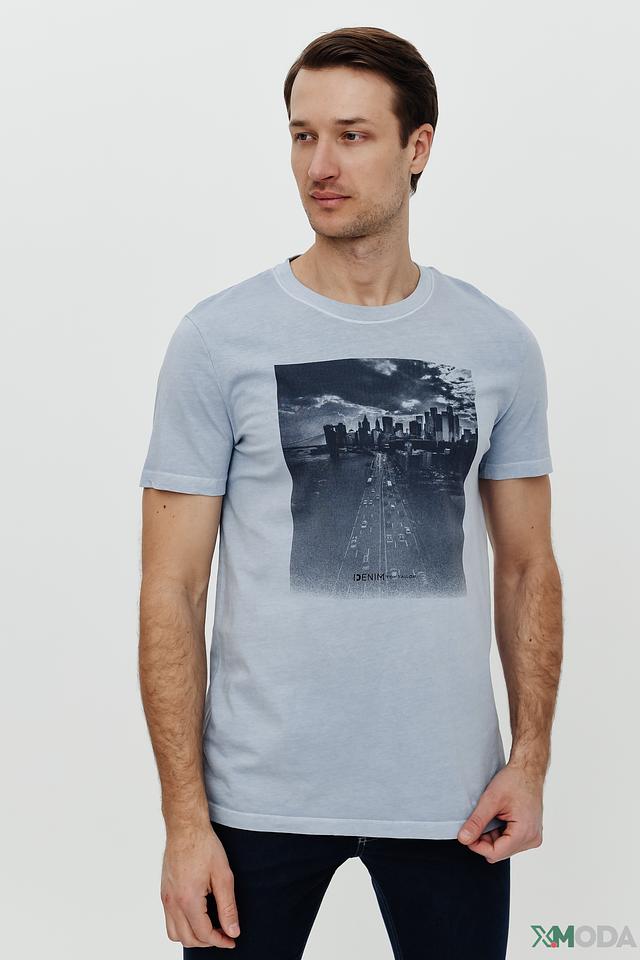 Мужская футболка Tom Tailor голубого цвета с ярким принтом в стиле denim. Изготовлена из 100% хлопка, обеспечивающего комфорт и воздухопроницаемость. Стильный и удобный выбор для повседневного образа. Состав: хлопок 100%