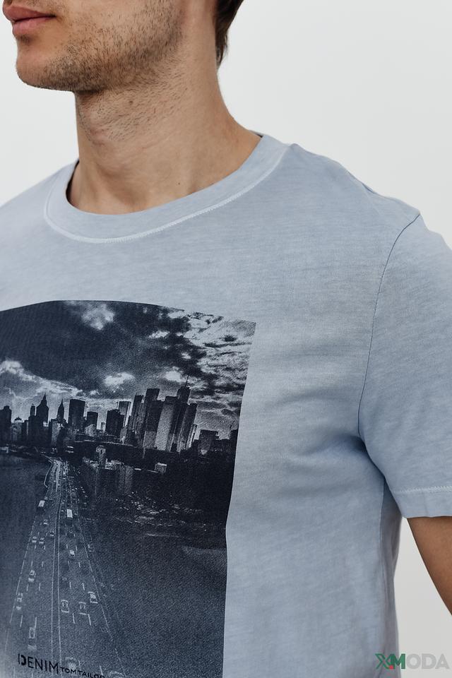 Мужская футболка Tom Tailor – это сочетание комфорта и стиля. Футболка выполнена в голубом цвете и украшена эффектным принтом с изображением городского пейзажа в стиле denim.