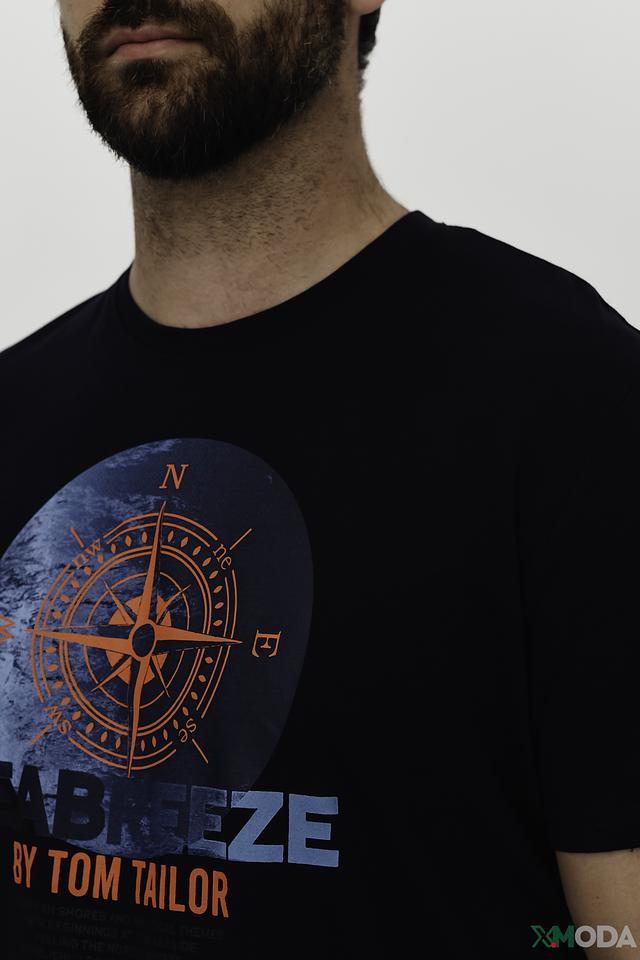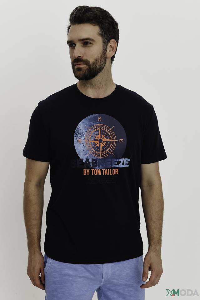 Мужская футболка Tom Tailor темно-синего цвета с ярким принтом в виде компаса. Изготовлена из 100% хлопка, обеспечивающего комфорт и воздухопроницаемость. Стильный дизайн и качественный материал делают эту футболку отличным выбором для повседневной носки. Состав: хлопок 100%