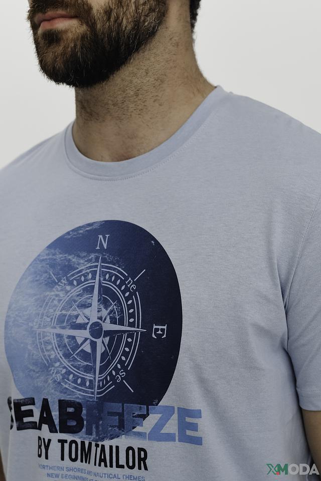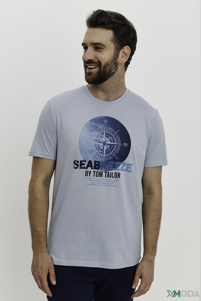 Мужская футболка Tom Tailor голубого цвета с оригинальным принтом в морском стиле. Изготовлена из 100% хлопка, обеспечивающего комфорт и воздухопроницаемость. Отличный выбор для повседневного образа. Состав: хлопок 100%