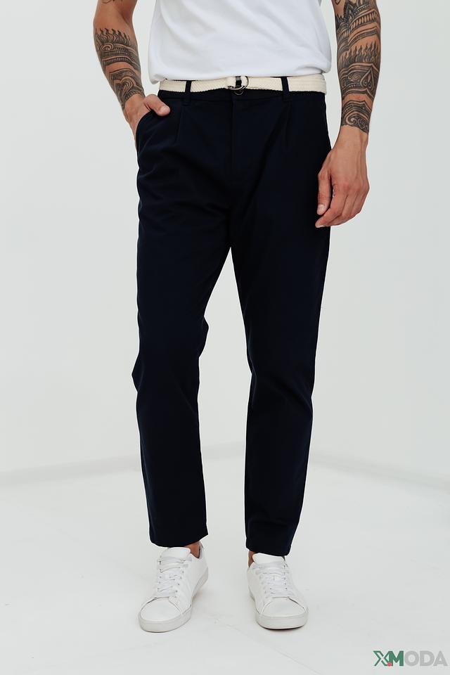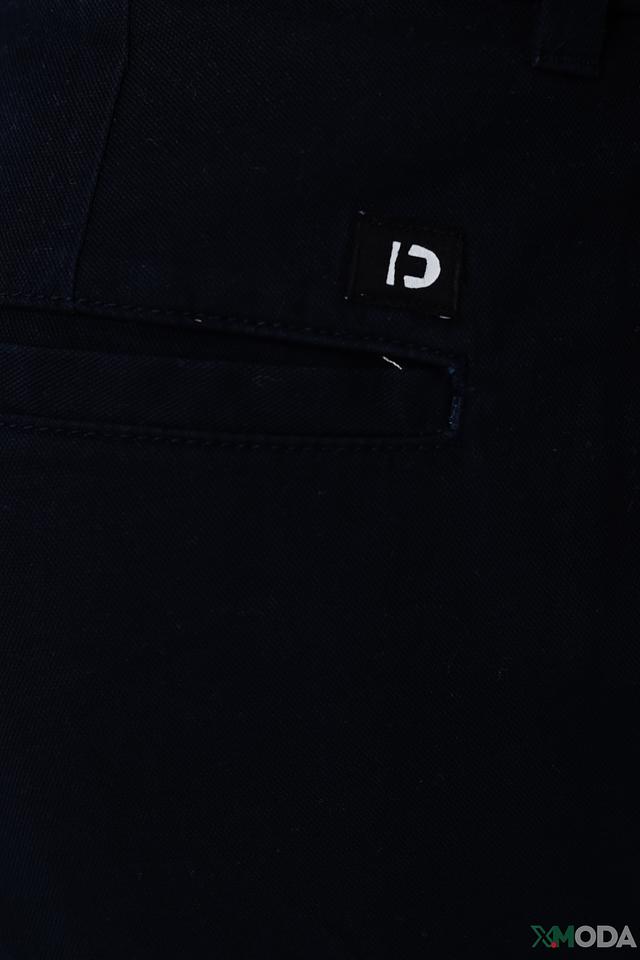 Брюки имеют тёмно-синий цвет и выполнены из 100% хлопка, что обеспечивает комфорт и воздухопроницаемость. Прямой крой и стандартная посадка делают их универсальными для разных типов фигуры.