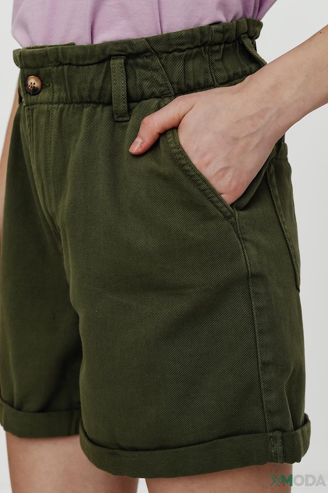 Женские шорты Tom Tailor цвета хаки — удобная и стильная модель с эластичным поясом и укороченным кроем. Шорты выполнены из 100% хлопка, что обеспечивает комфорт в жаркую погоду. Состав: хлопок 100%