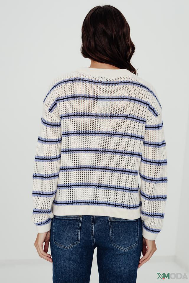 Женский пуловер Tom Tailor denim girl белого и синего цвета, выполнен в горизонтальную полоску. Модель имеет круглый вырез горловины и свободный крой, идеально подходит для создания повседневных образов. Состав: хлопок 100%