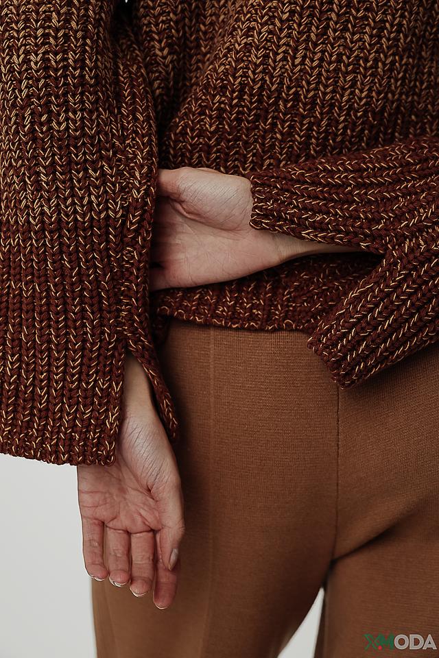 Модель имеет удобный крой и слегка завышенную горловину, что делает ее универсальной для различных образов. Текстура вязания придает пуловеру объем и уют. Состав ткани – 60% хлопок и 40% полиакрил, обеспечивающий мягкость, тепло и простоту в уходе.