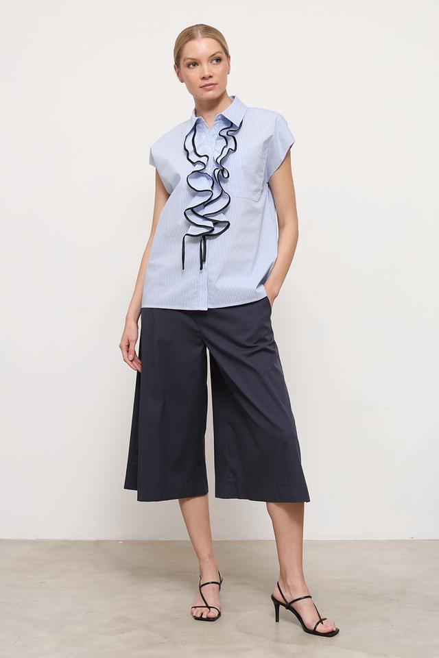 Представляем элегантные брюки-кюлоты от бренда Toni collection. Эта модель выполнена в насыщенном тёмно-синем цвете, который легко сочетается с различными элементами гардероба.