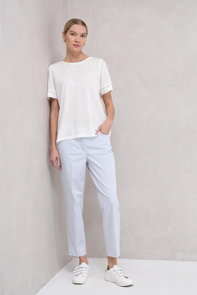 Брюки имеют классический прямой крой, который подходит для любой фигуры. Изготовлены из высококачественного хлопка с добавлением полиэстера и эластана, что обеспечивает приятные тактильные ощущения, хорошую посадку и устойчивость к сминанию.