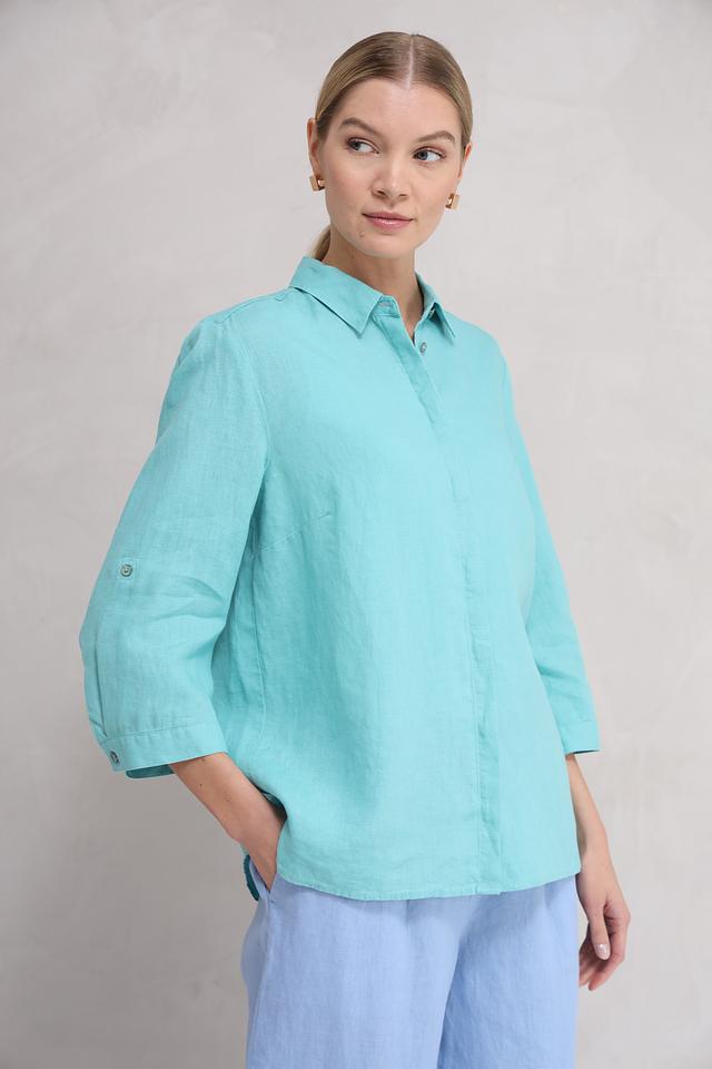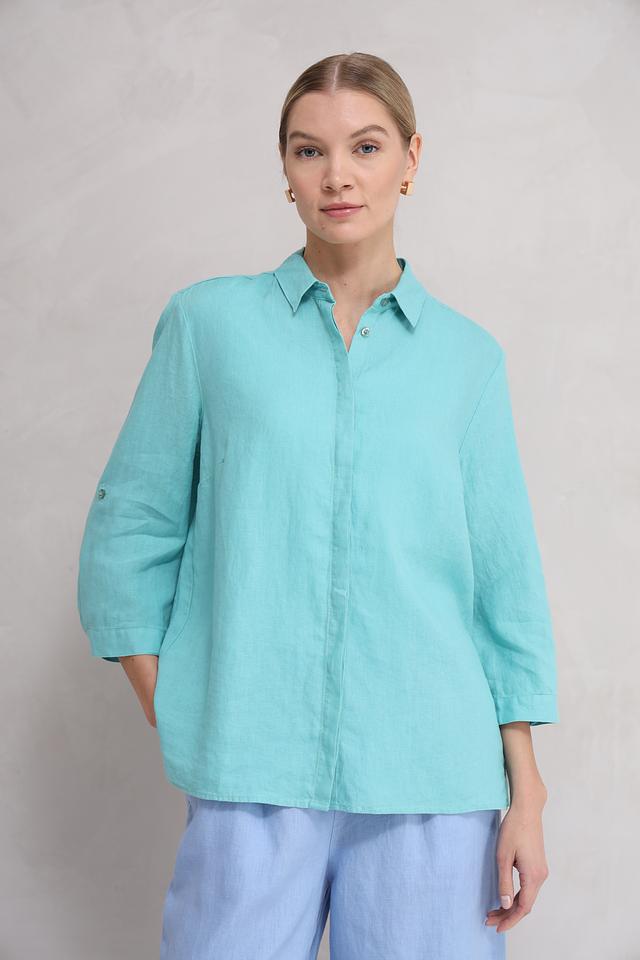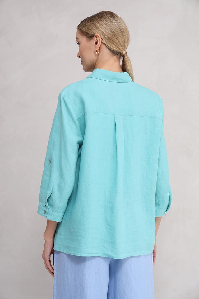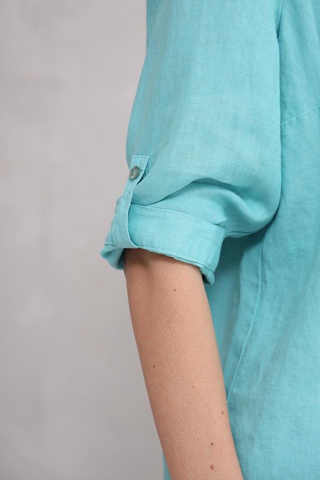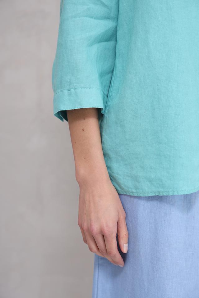 Мятная рубашка Toni collection из 100% льна – это стильное и комфортное решение для создания легкого летнего образа. Свободный крой и ¾ рукава обеспечивают удобство и свободу движений, а натуральный лен дарит ощущение прохлады в жаркую погоду. Состав: лен 100%